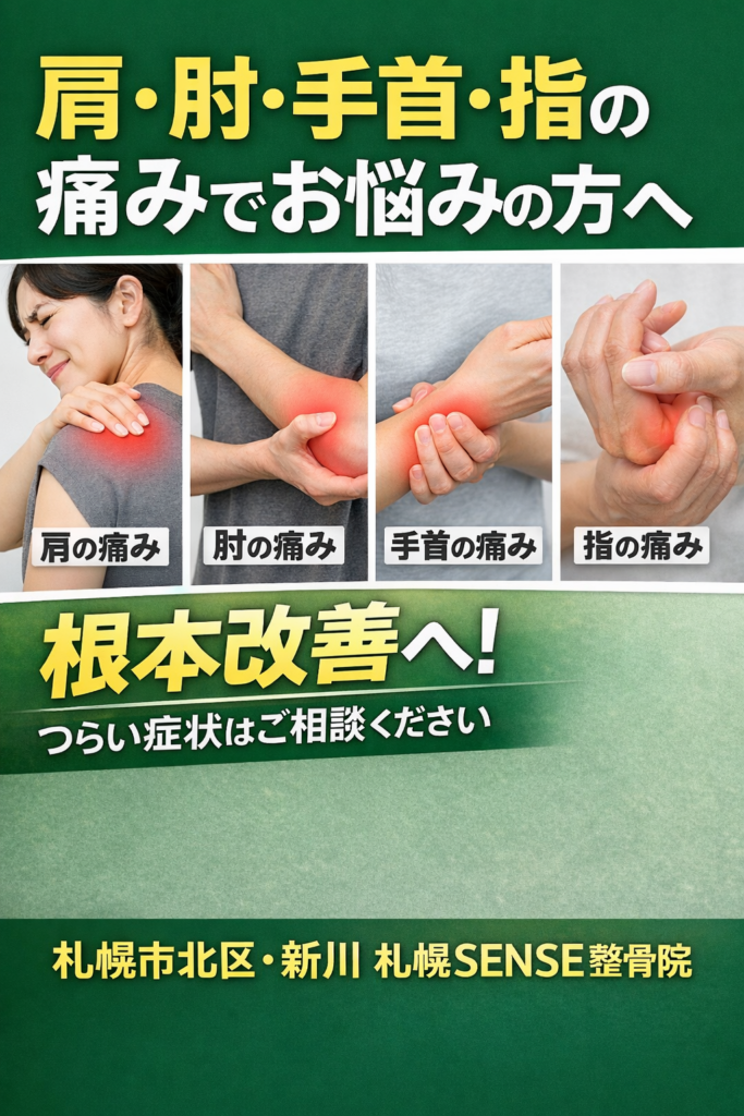 肩・肘・手首・指の痛みでお悩みの方へ|札幌市北区・新川の札幌SENSE整骨院